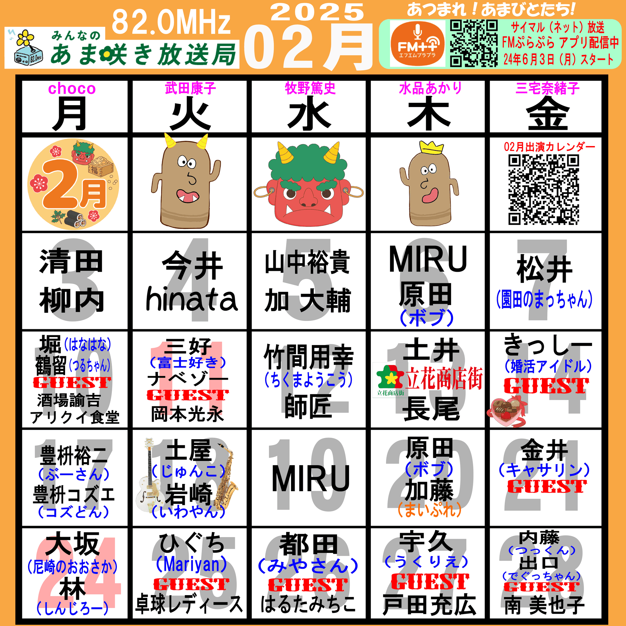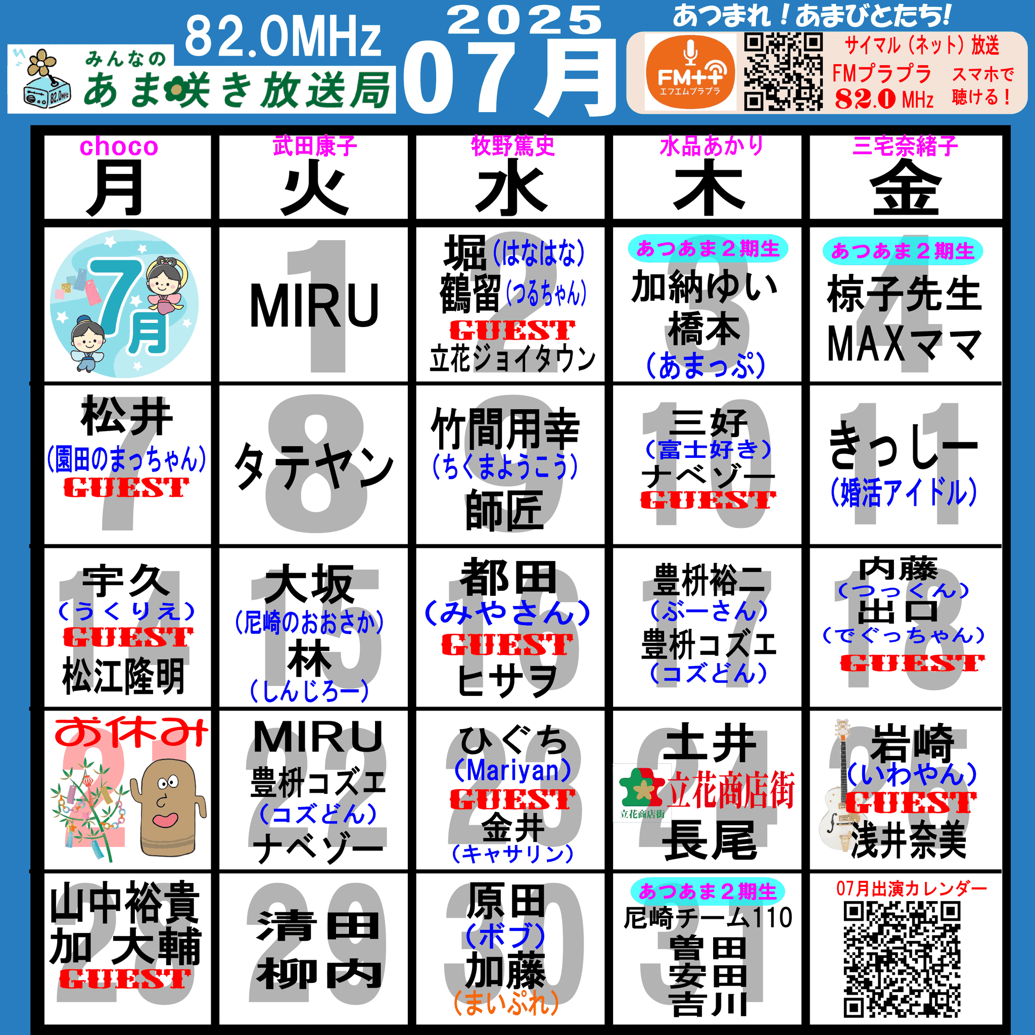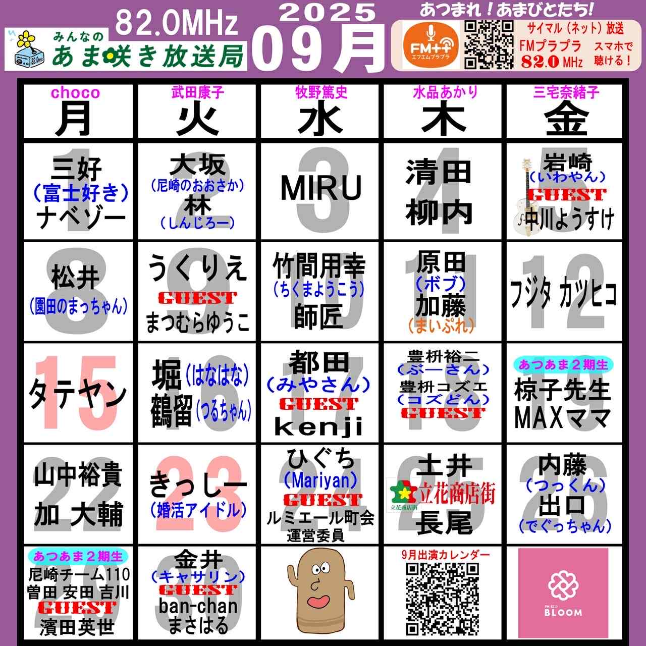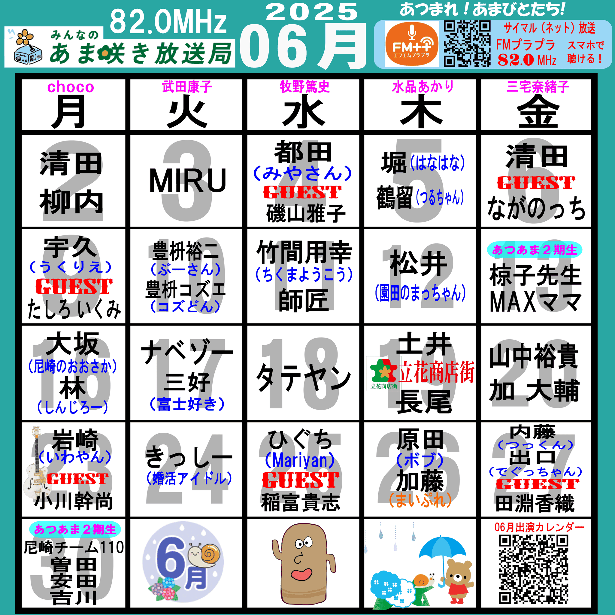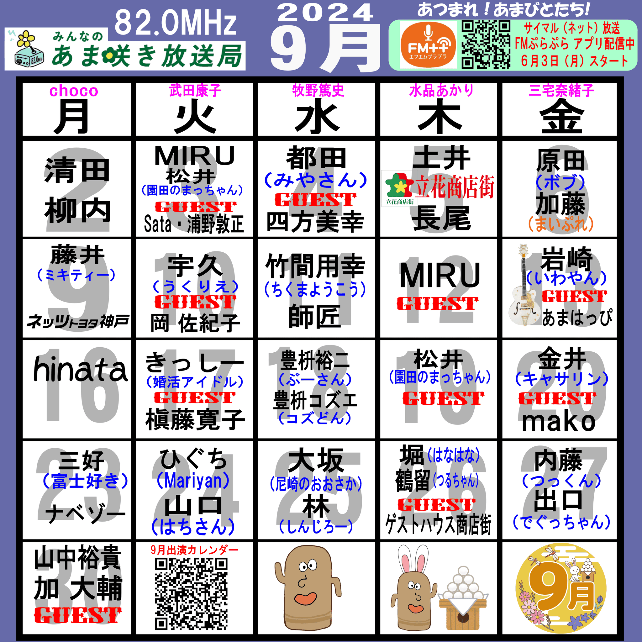 あつまれ!あまびとたち!番組の放送スケジュール表です!