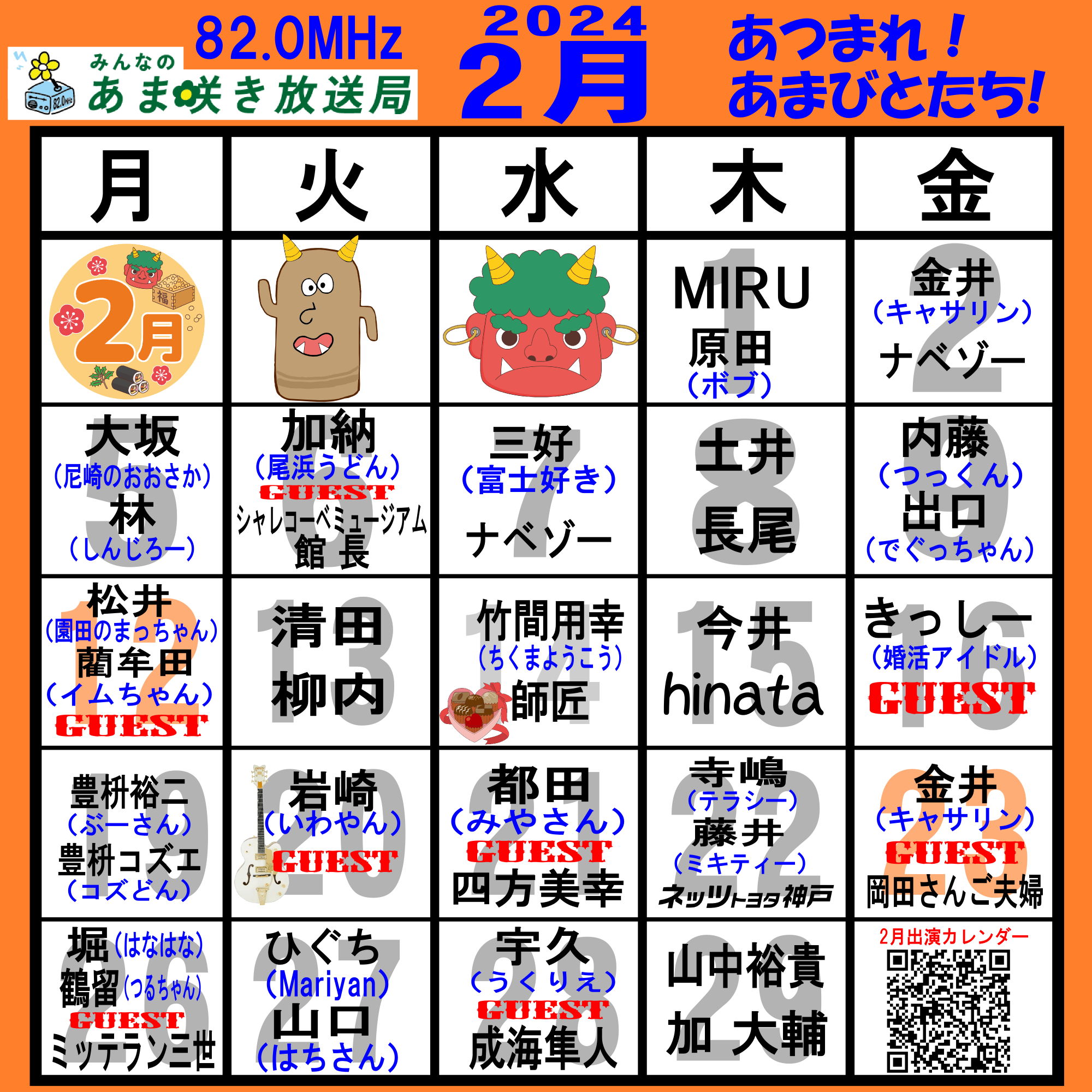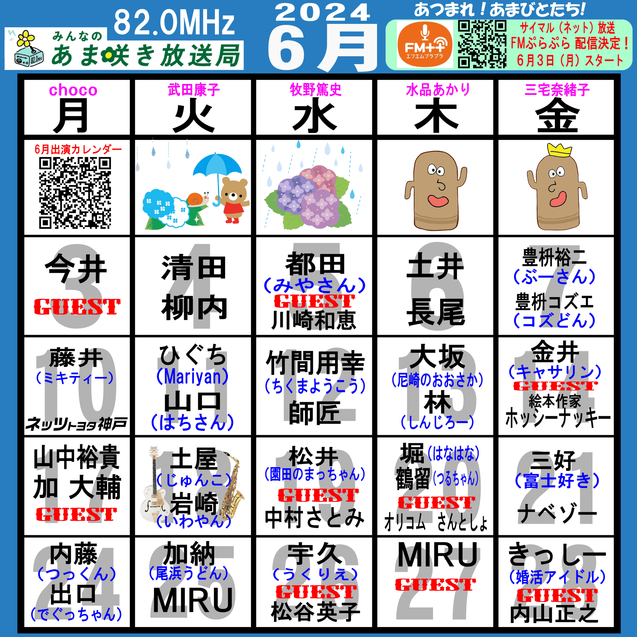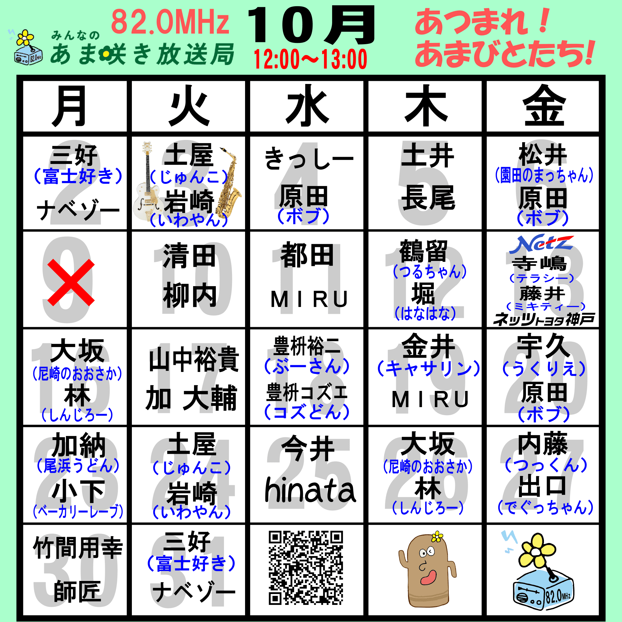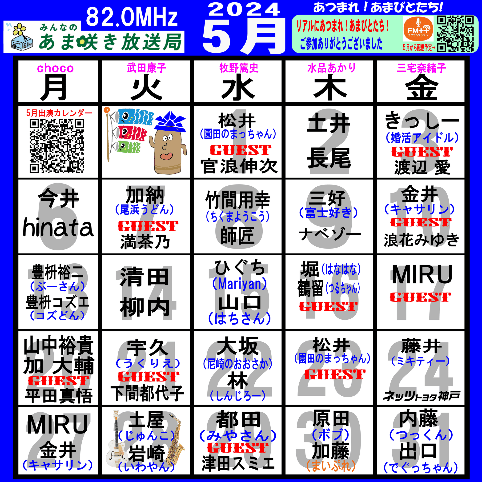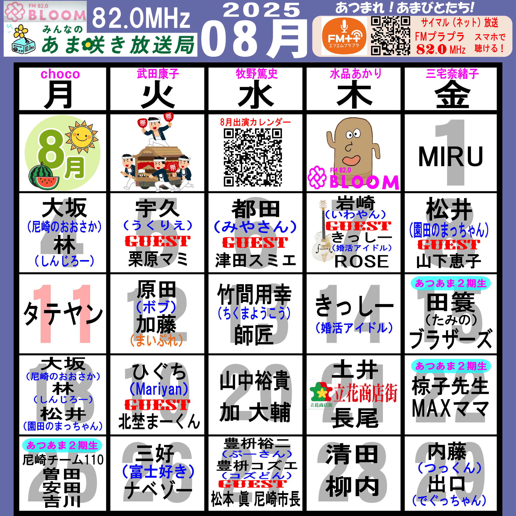 あつまれ!あまびとたち!番組の放送スケジュール表です!