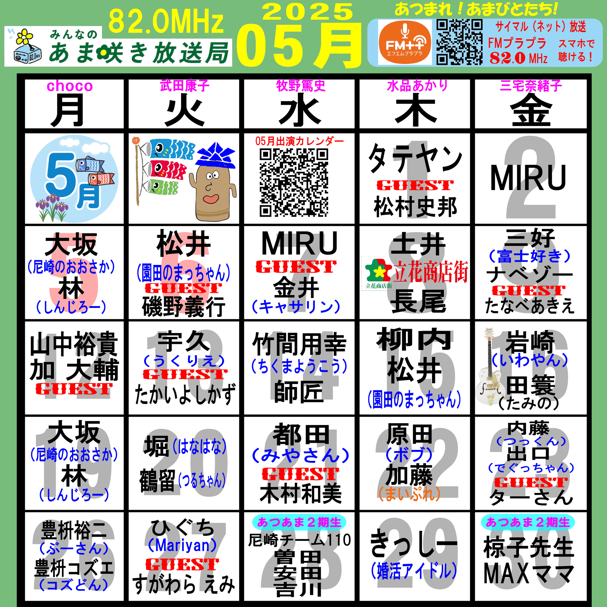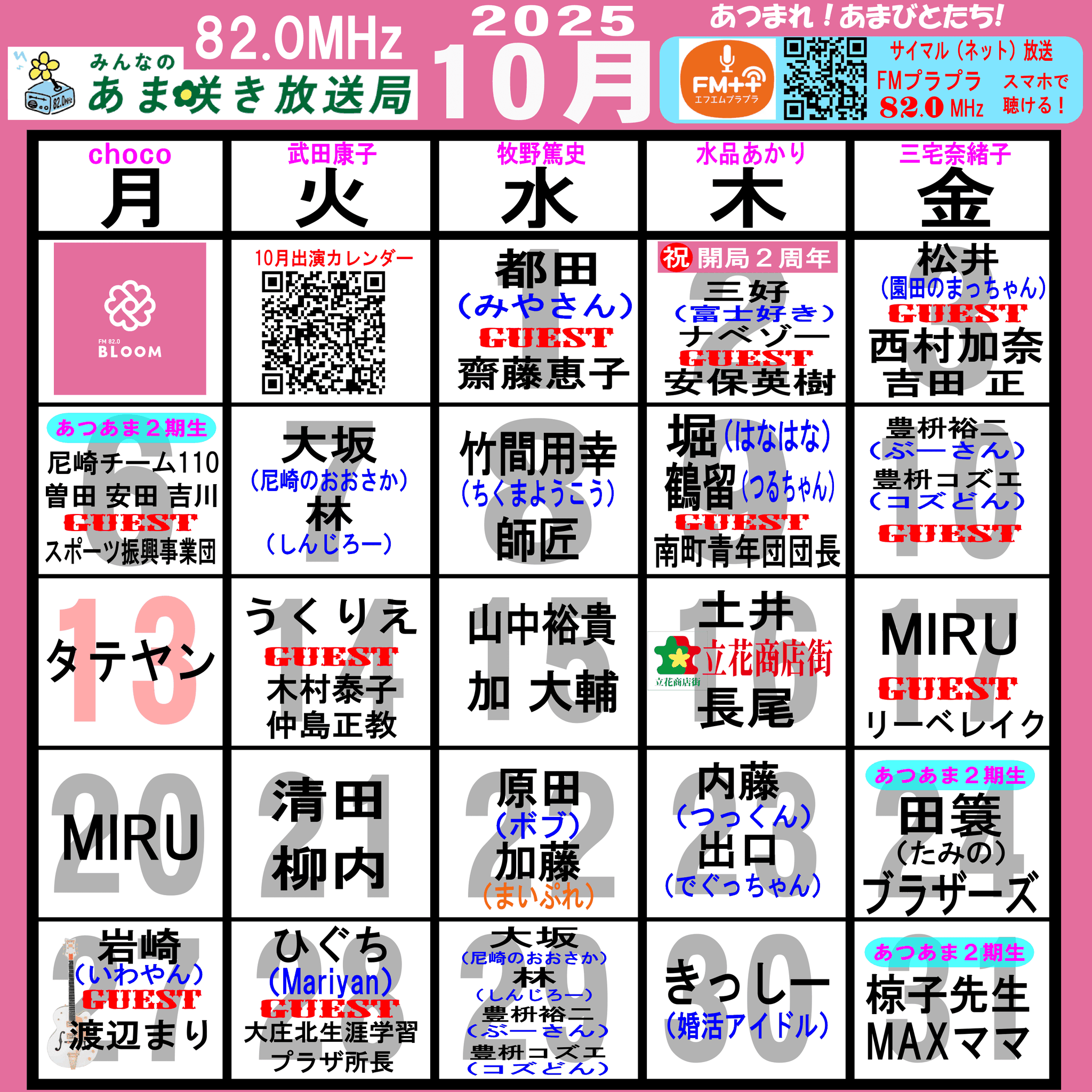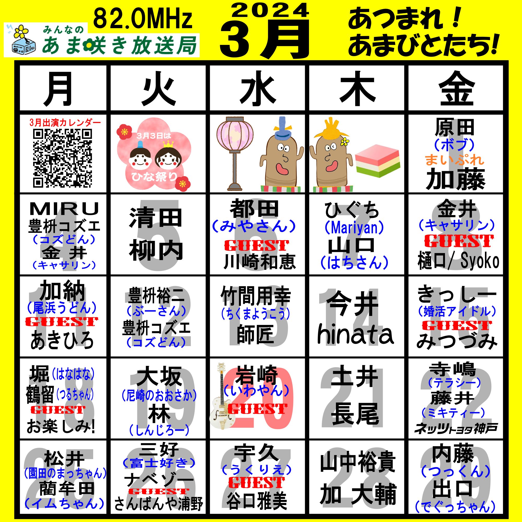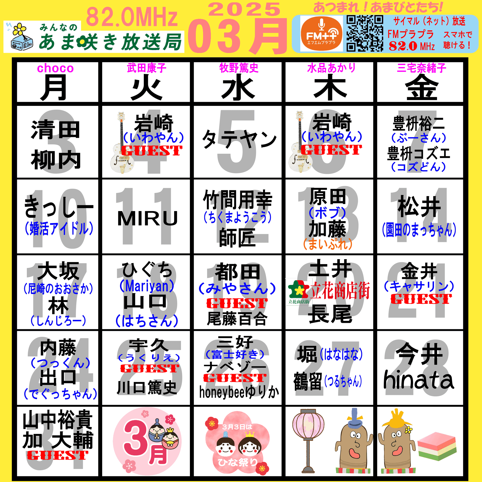 あつまれ!あまびとたち!番組の放送スケジュール表です!