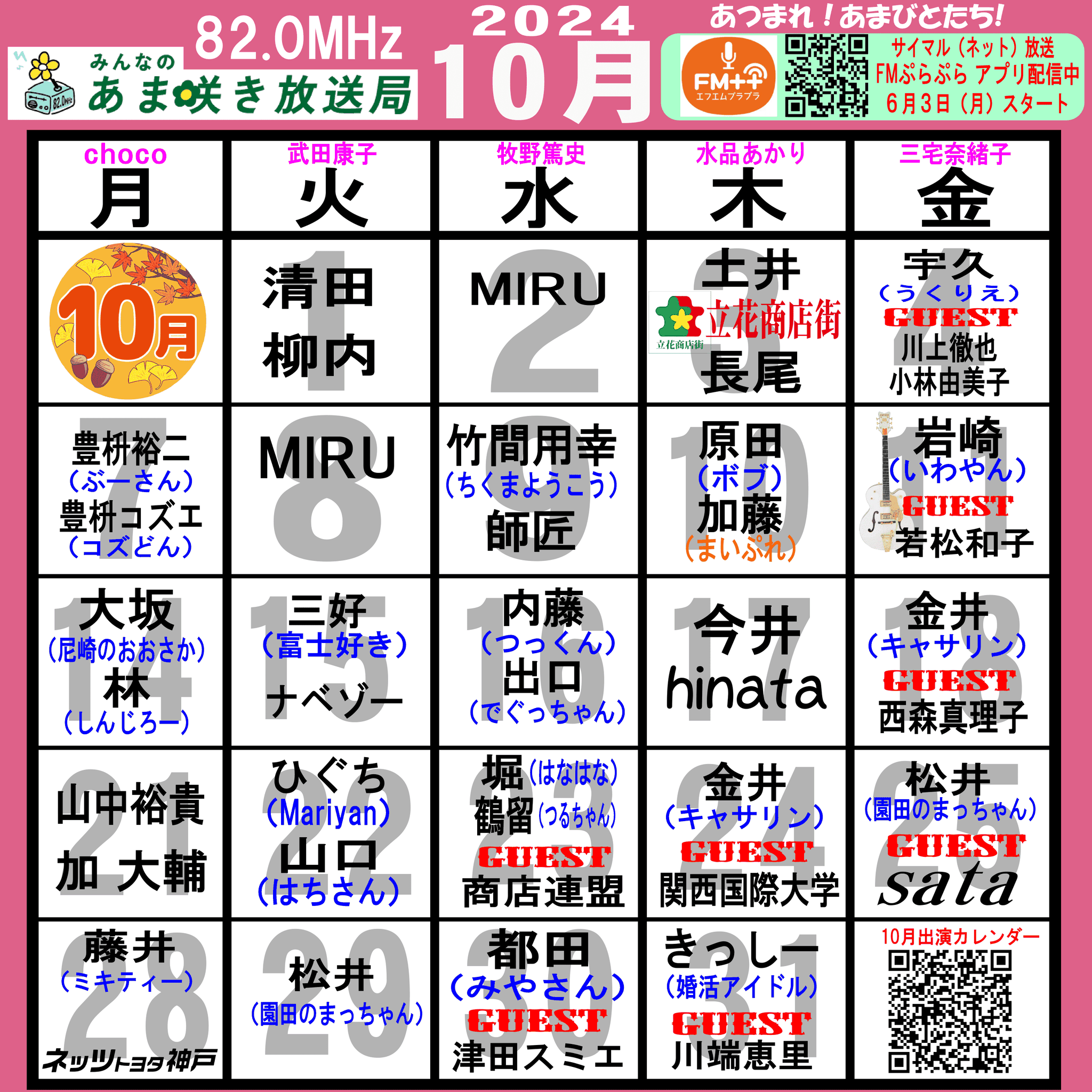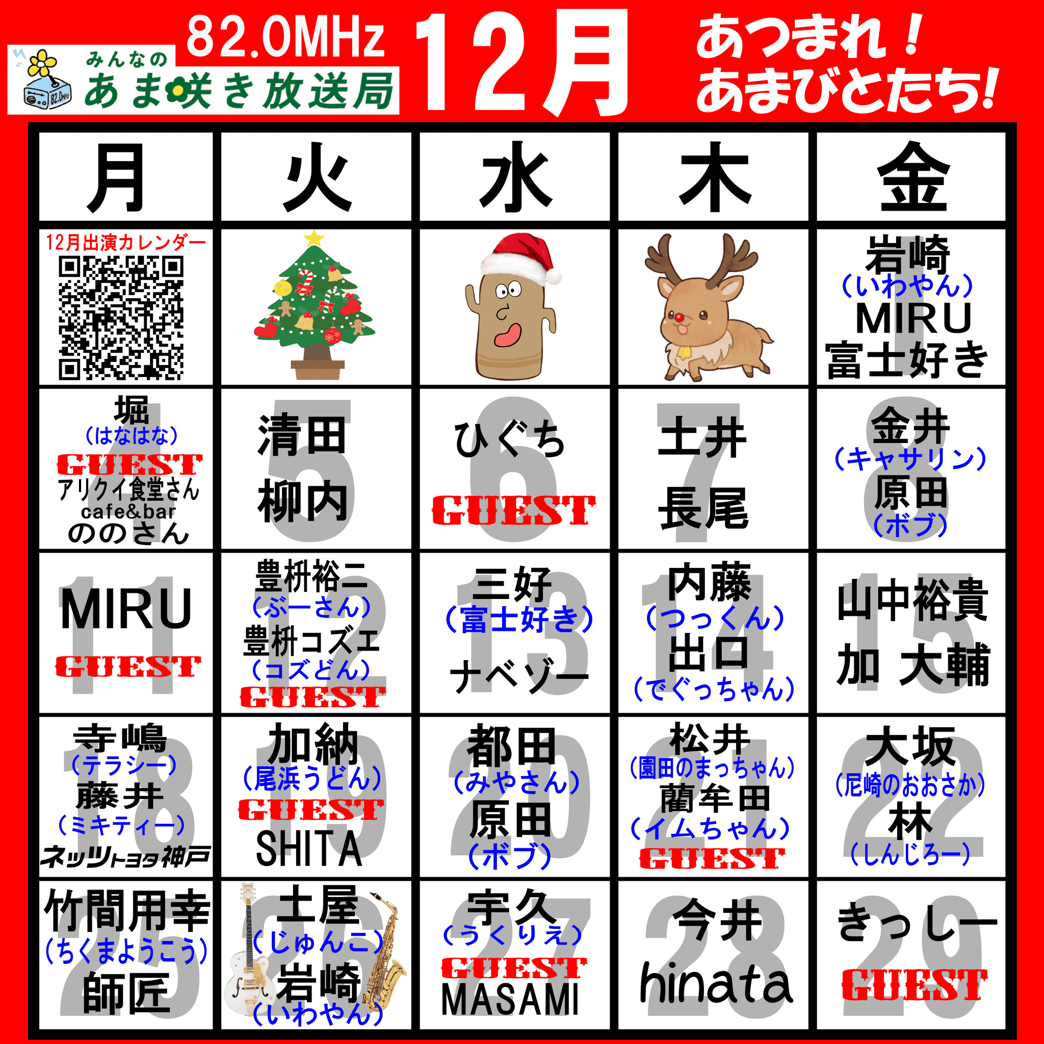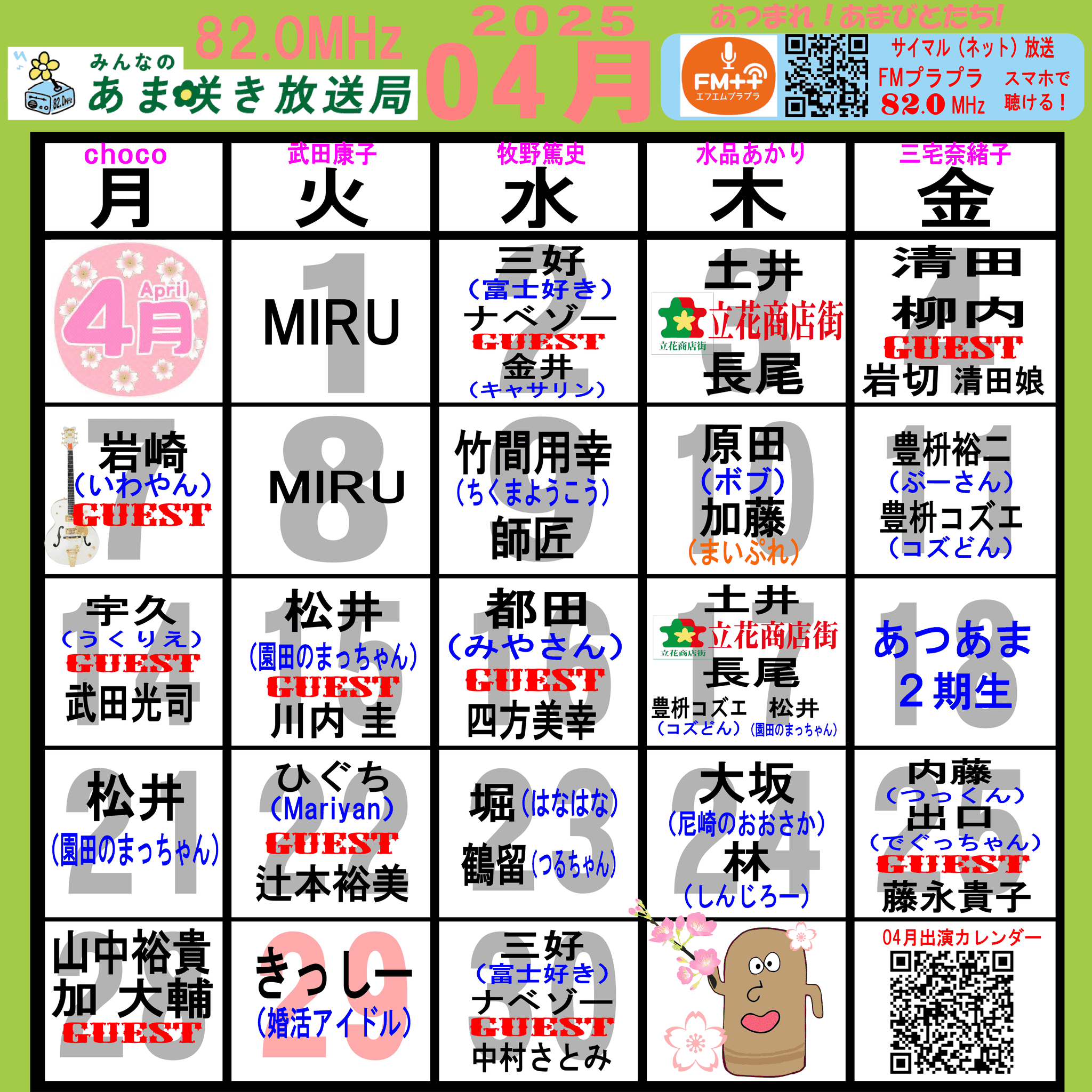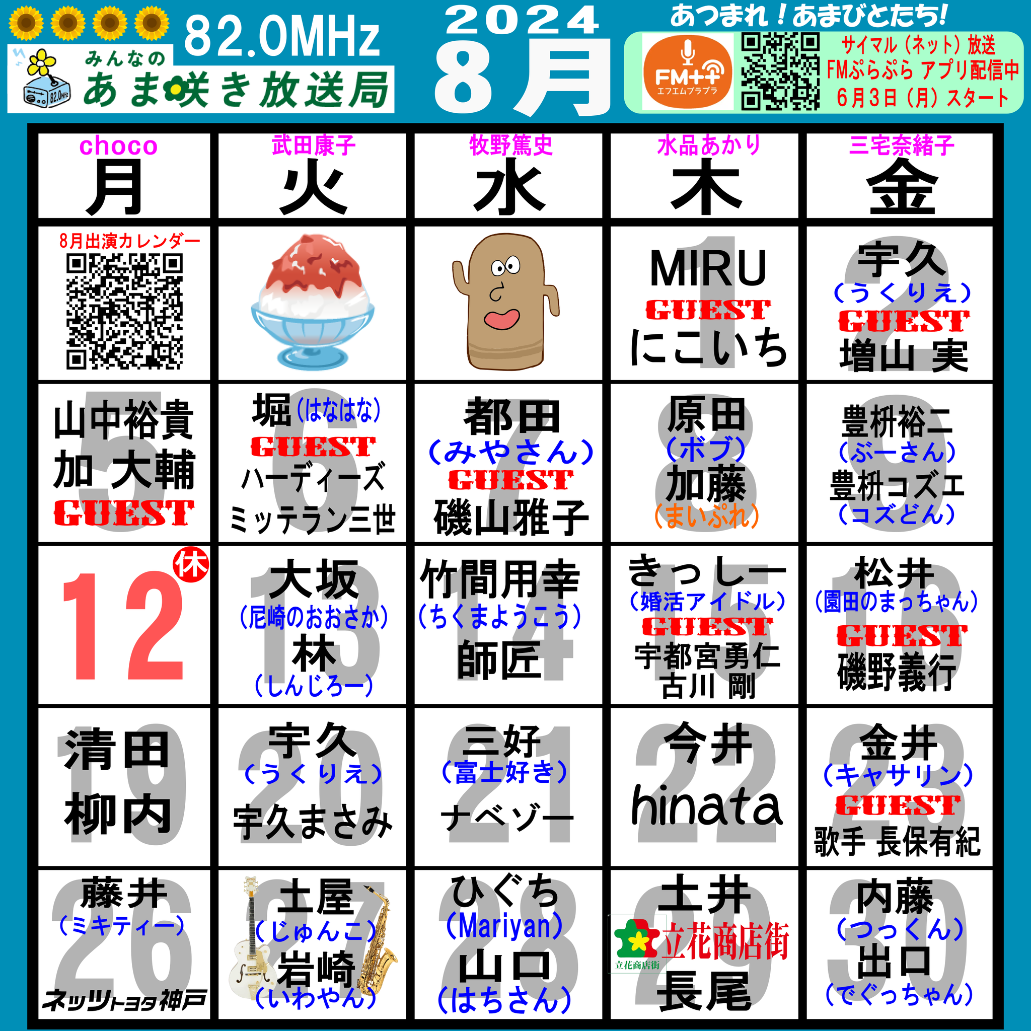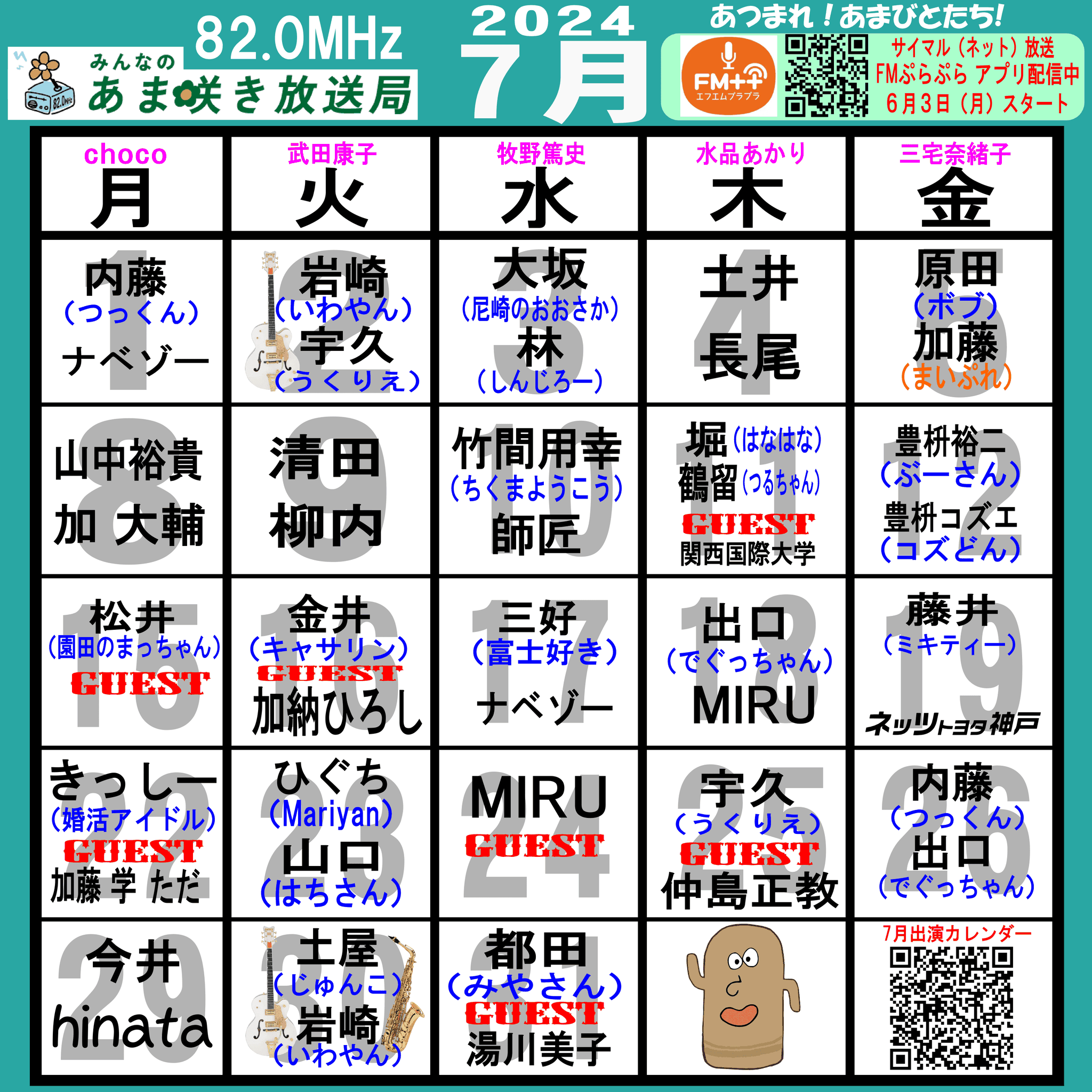 あつまれ!あまびとたち!番組の放送スケジュール表です!