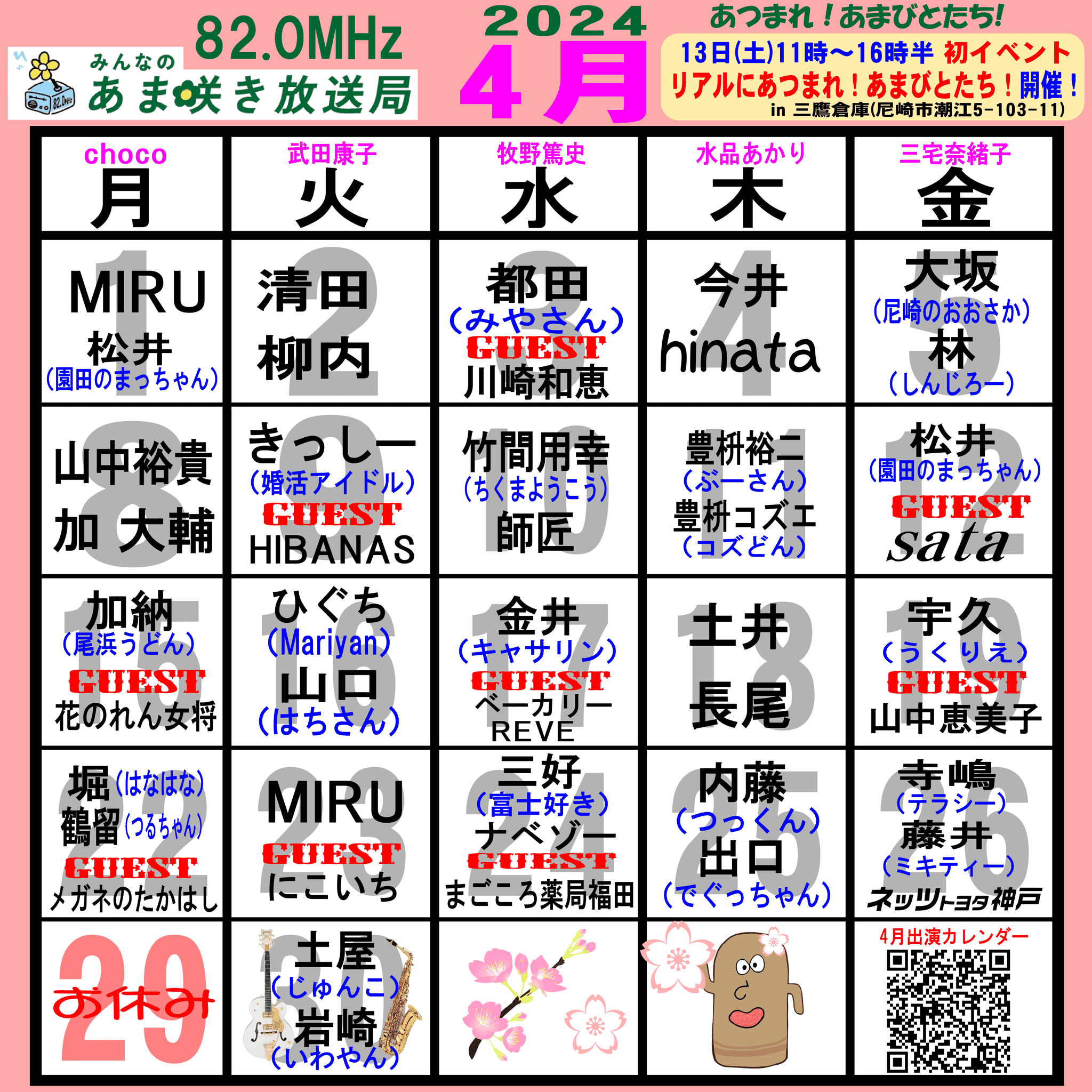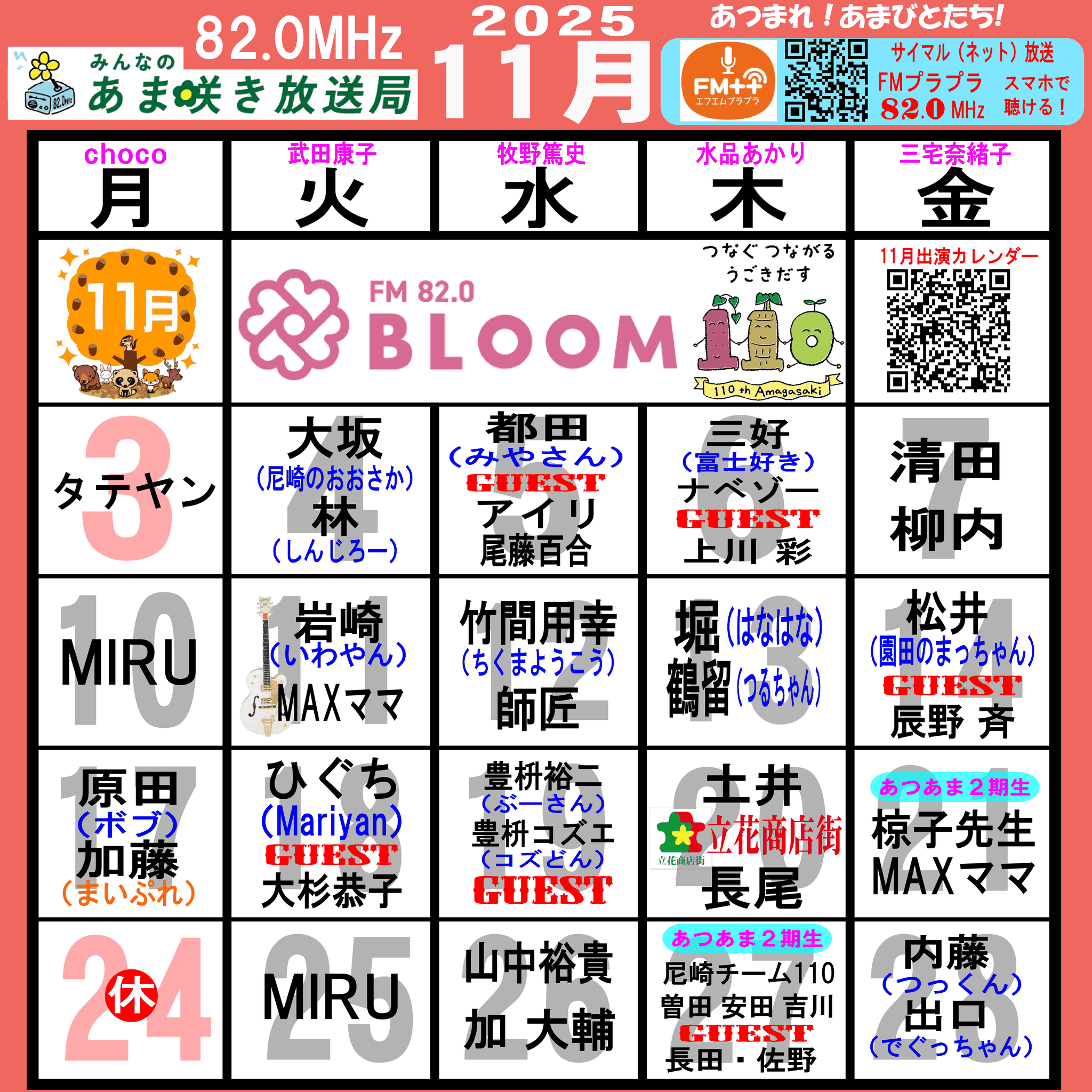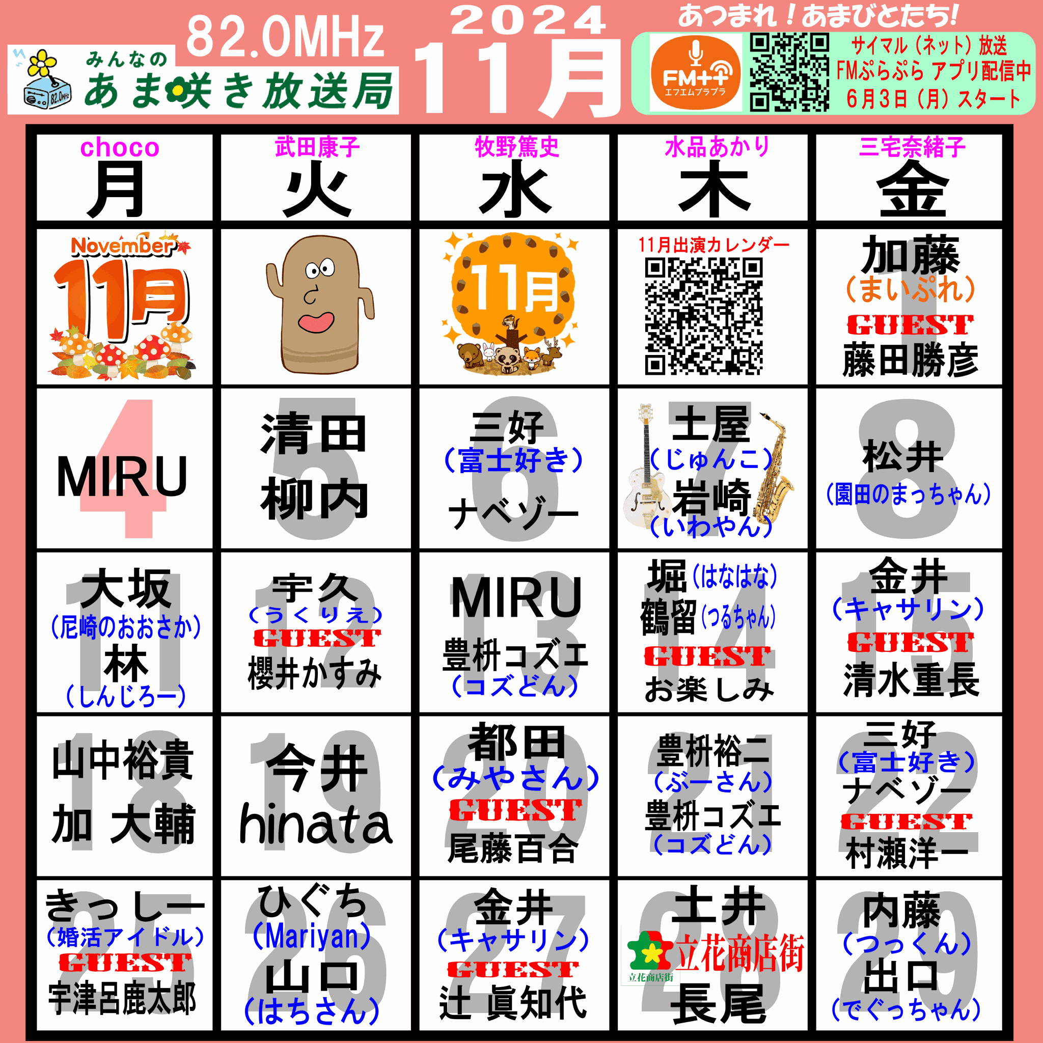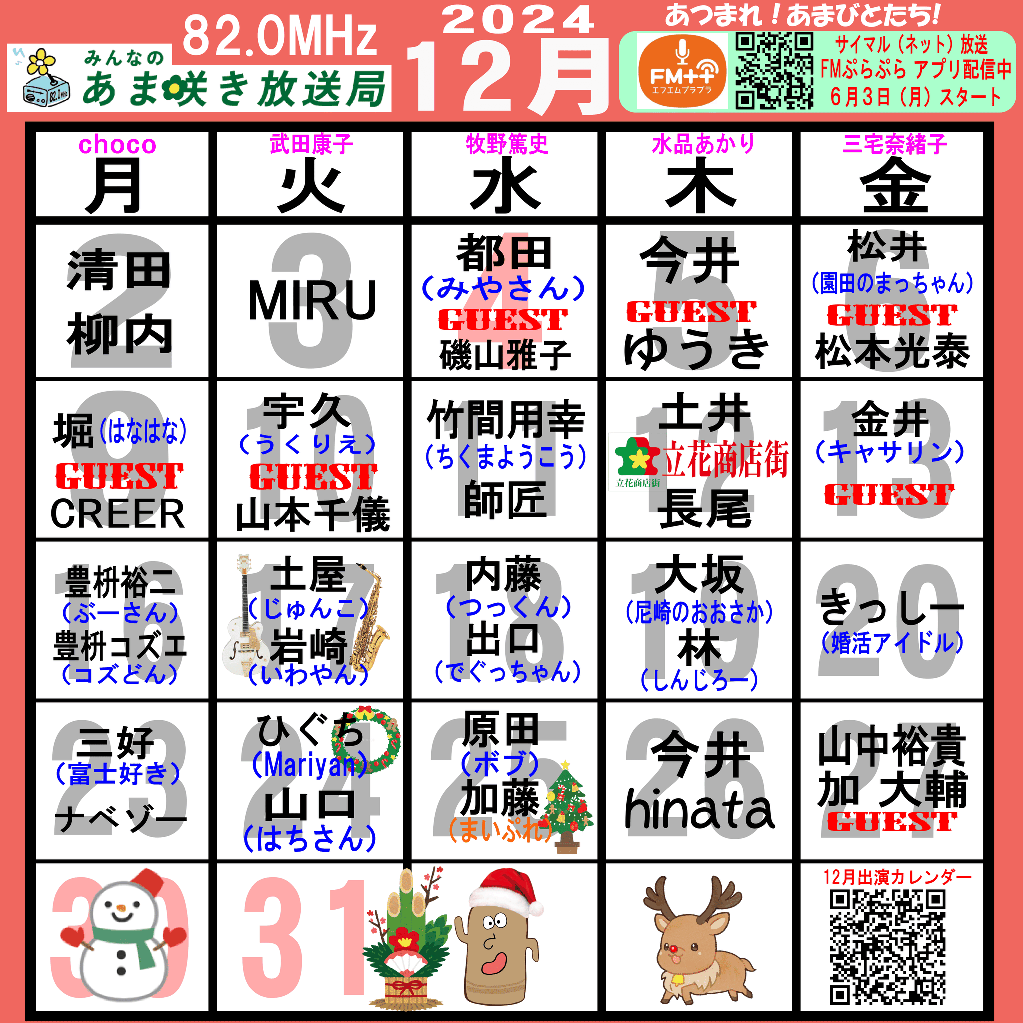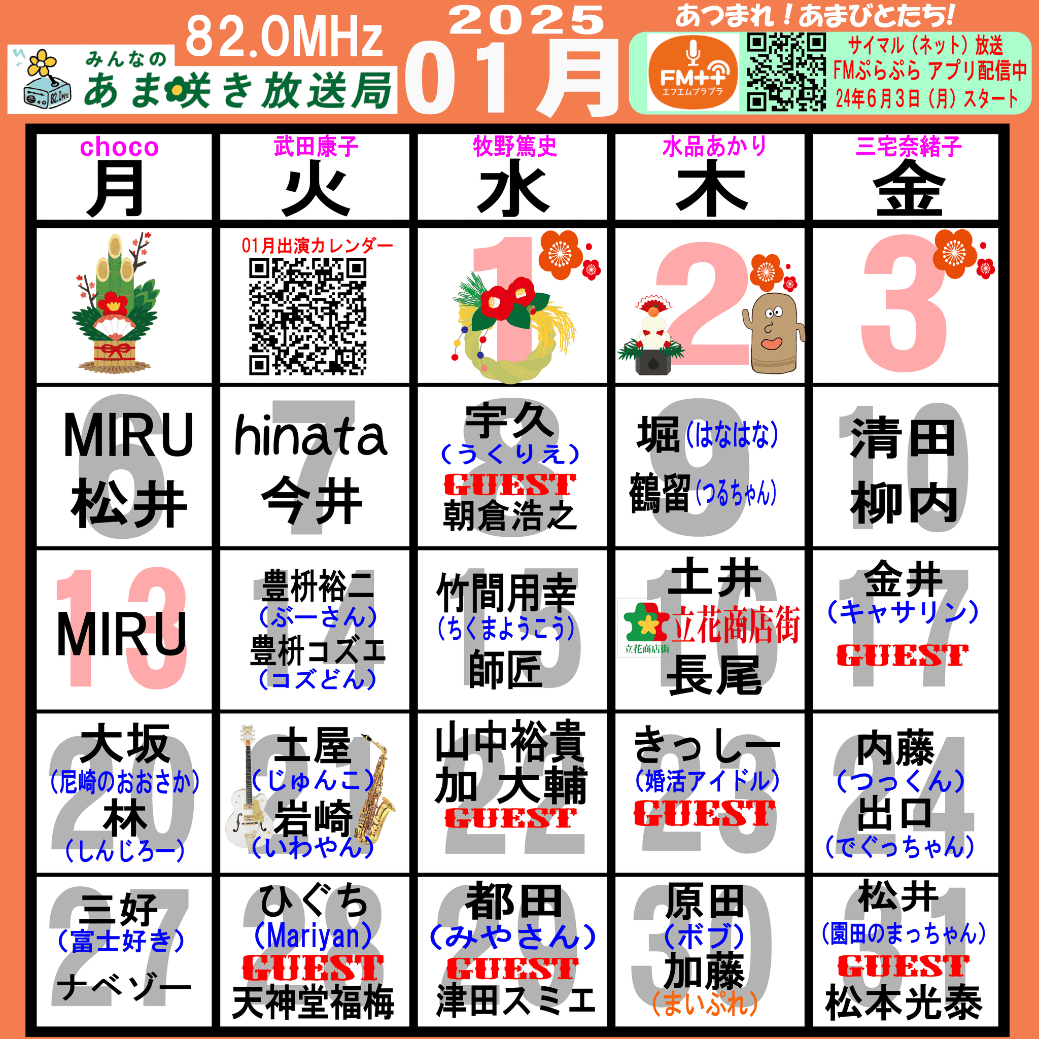 あつまれ!あまびとたち!番組の放送スケジュール表です!